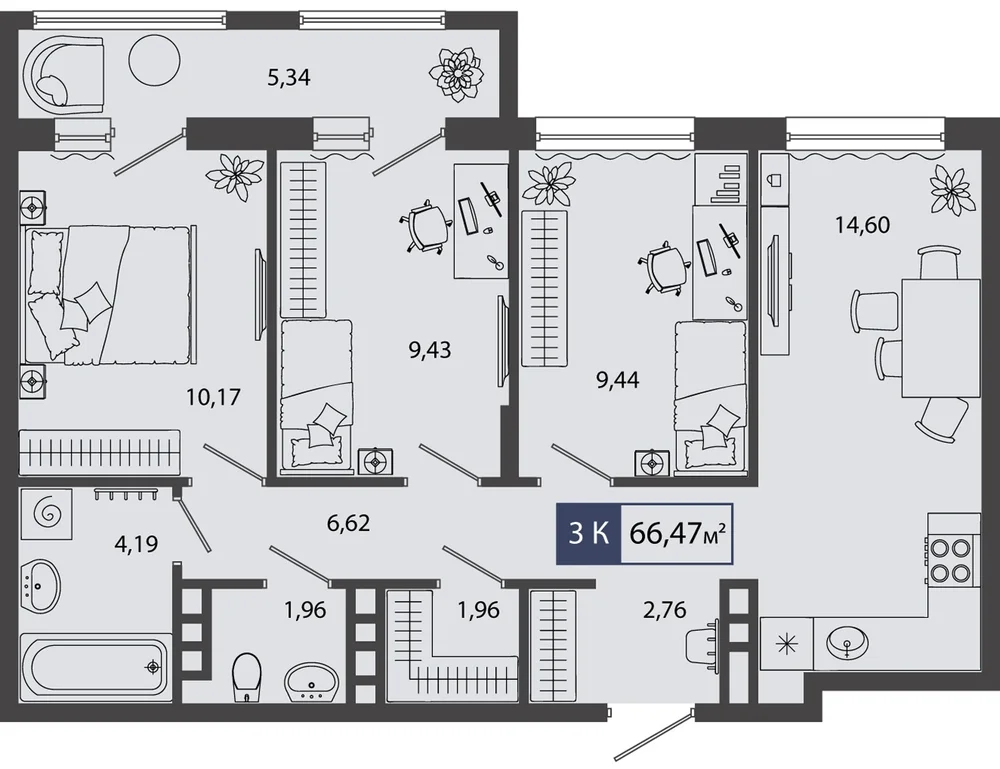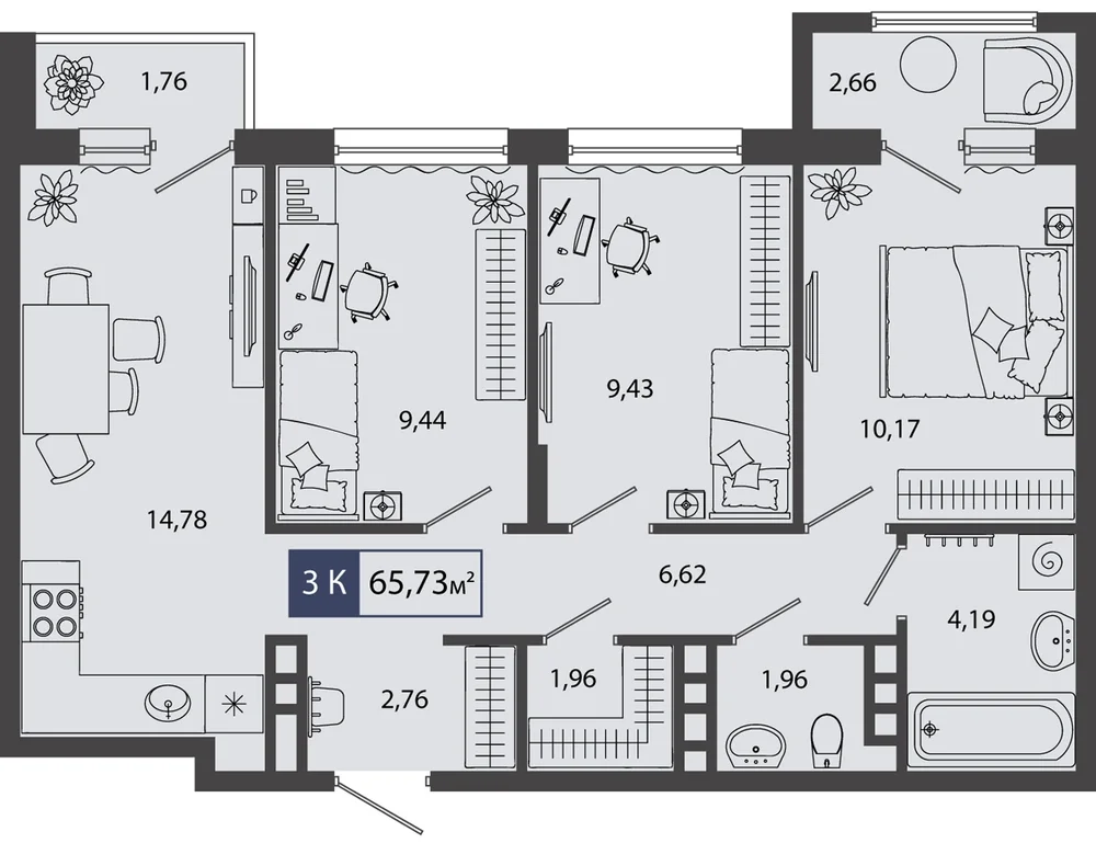 3-комнатная