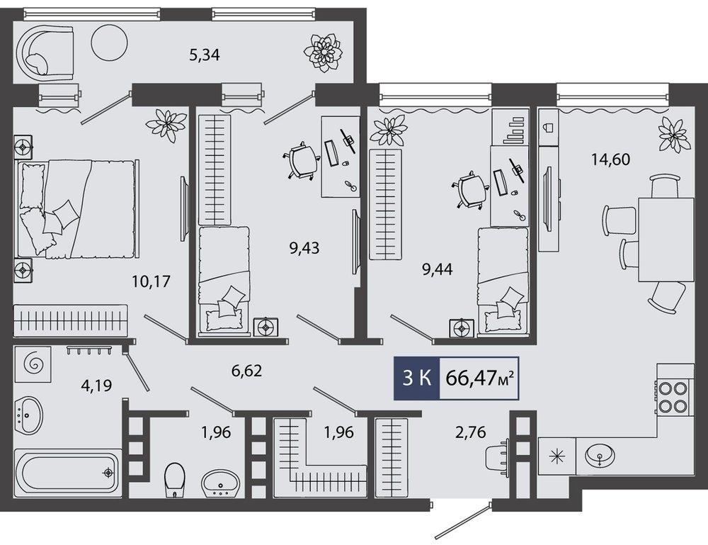 - Тающие скидки№ 65СмородинаГП 8 - 2 очередь, Секция 2, Этаж 3