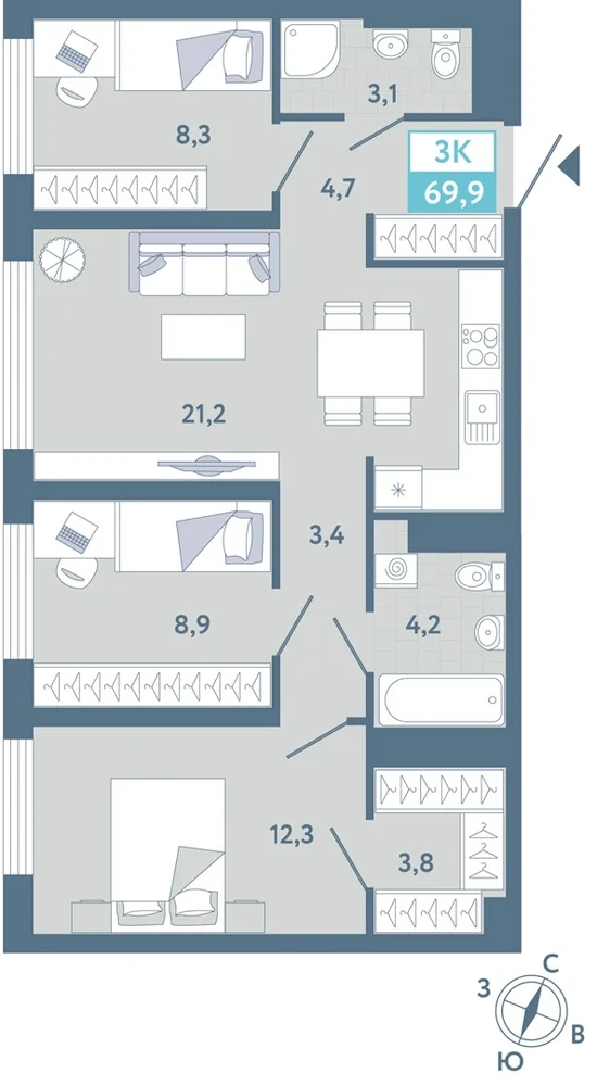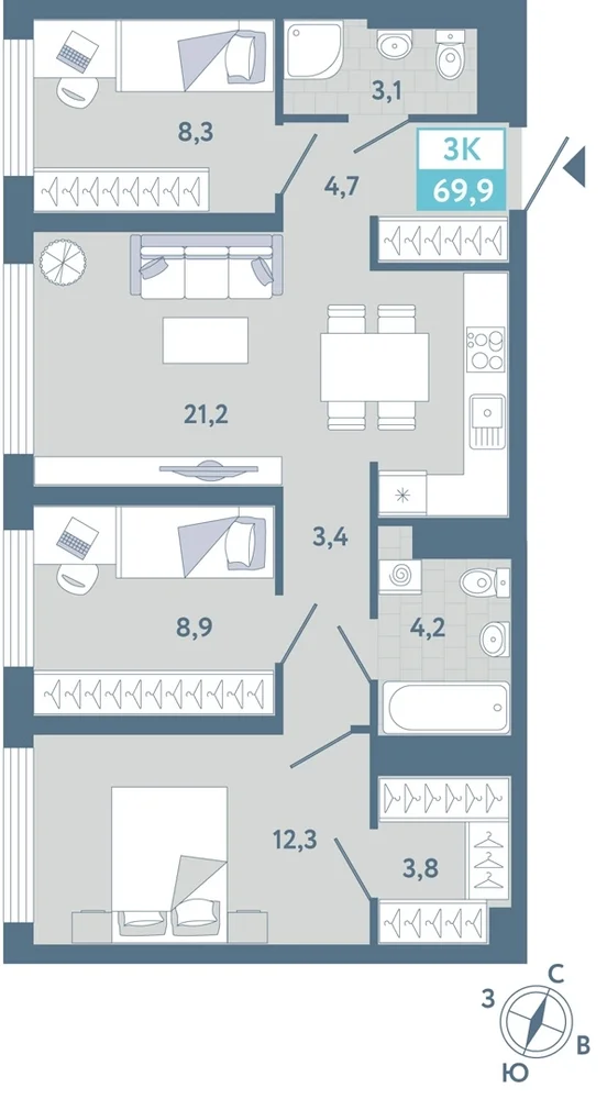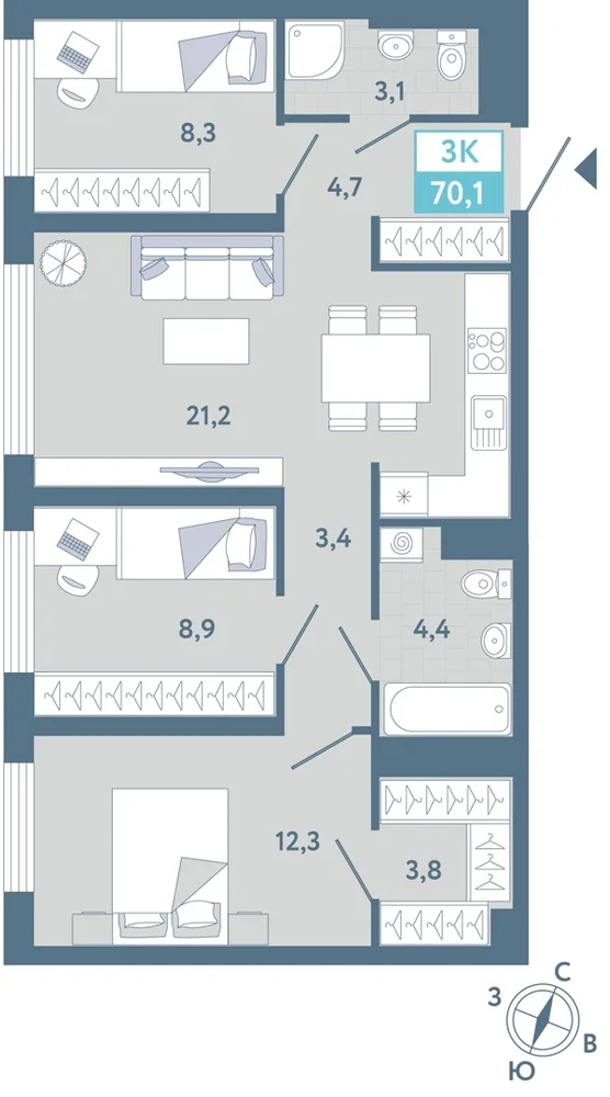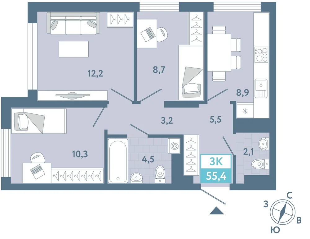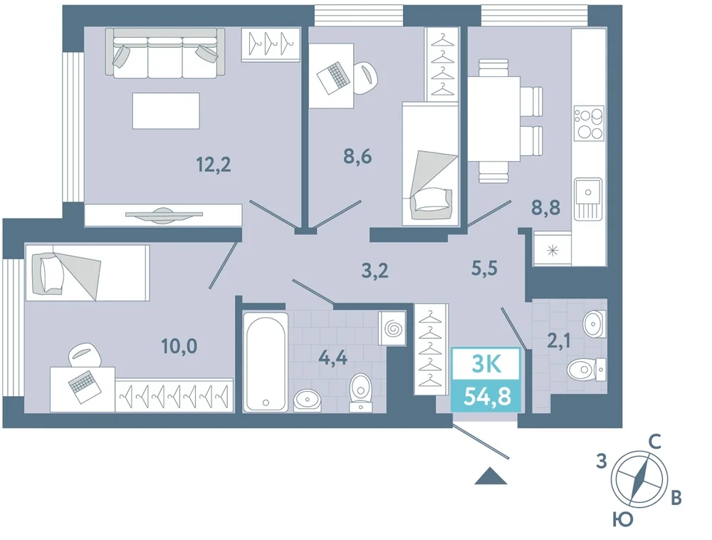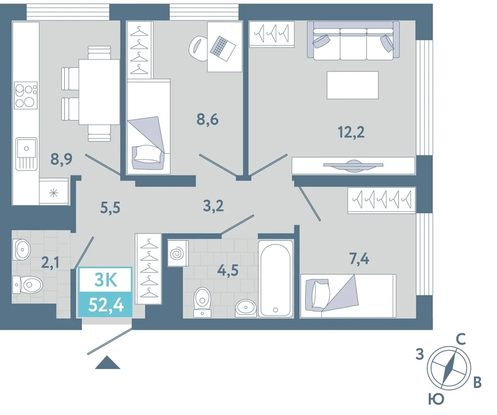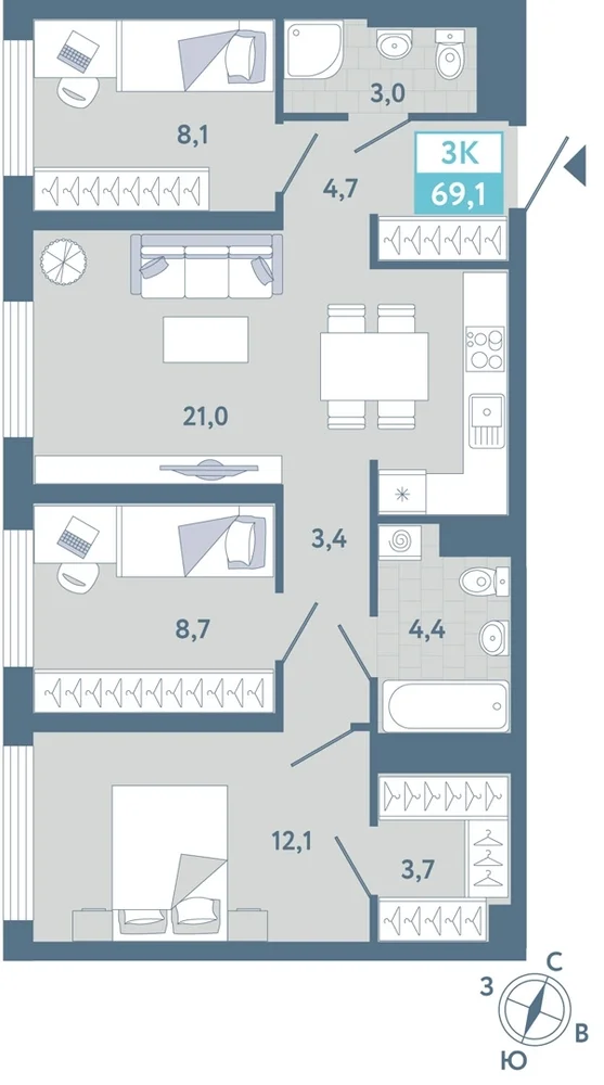 3-комнатная