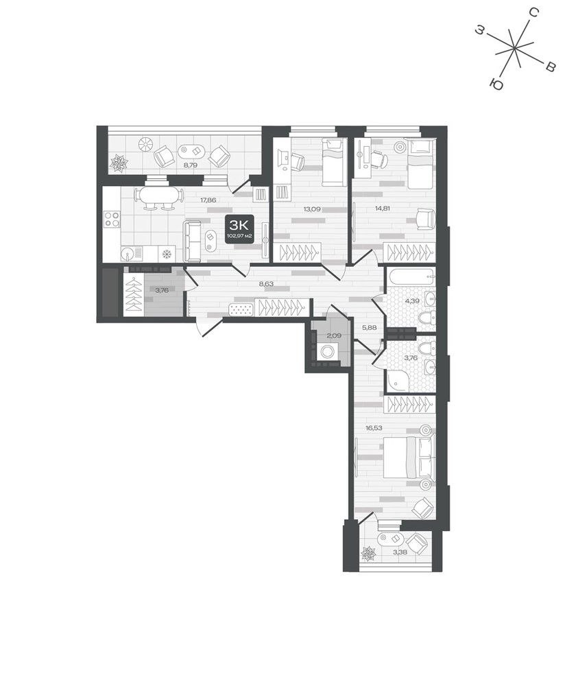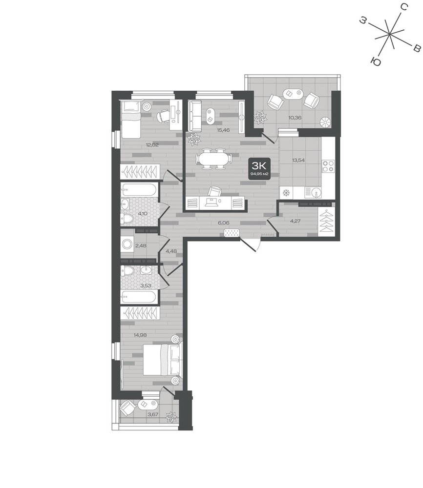 3-комнатная